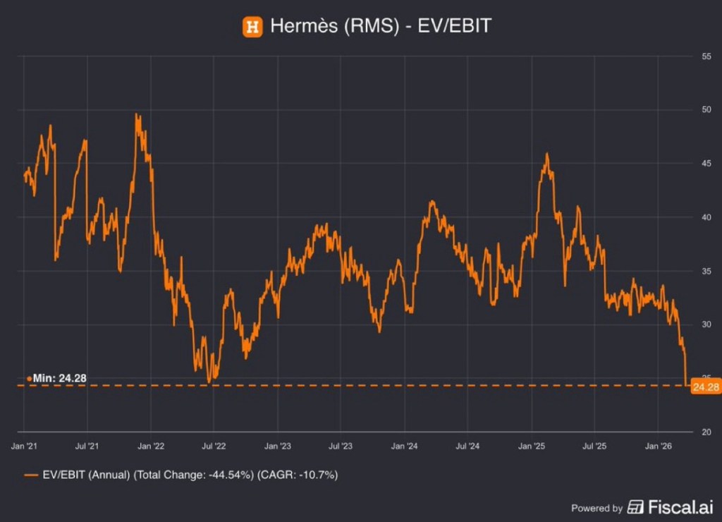 💼✨Hermès just slipped to its lowest valuation in 5 years. Luxury rarely goes on sale — is this the market’s quietest buying opportunity?