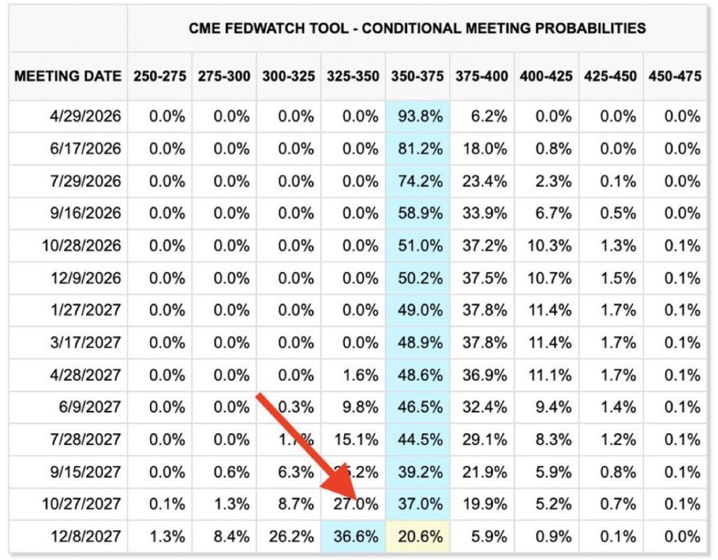 đź’Ą The U.S. Federal Reserve is now no longer expected to cut rates until December 2027