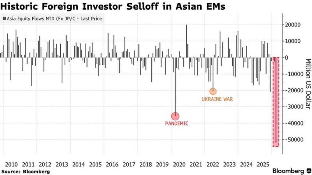 $52 Billion. One Month. The Largest EM Asia Capital Flight Ever Recorded Posted on March 28, 2026 by http://wealthcreation.club 🔴 $52 Billion. One Month. The Largest EM Asia Capital Flight Ever Recorded — And the Repricing Isn’t DoneRead More: bit.ly/CapitalFlight#EmergingMarkets #AsiaEquities #MacroStrategy Share this: Share on X (Opens in new window) X Share on Facebook (Opens in new window) Facebook Like Loading... Published by http://wealthcreation.club http://wealthcreation.club—We are educating regular people about how to be able to make more money in a disciplined way View all posts by http://wealthcreation.club