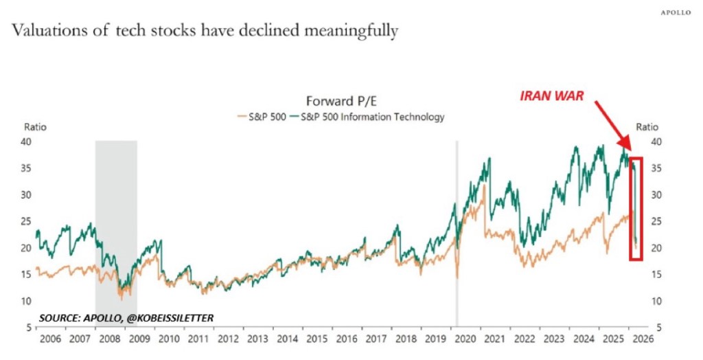 🚨 US Tech Valuations have halved — collapsing from 40x to 20x Forward P/E in mere weeks