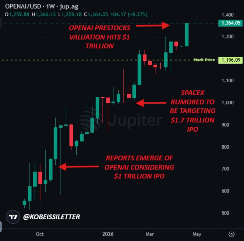 🚨 OpenAI just crossed $1 trillion in implied valuation — and the market priced it in real time, onchain