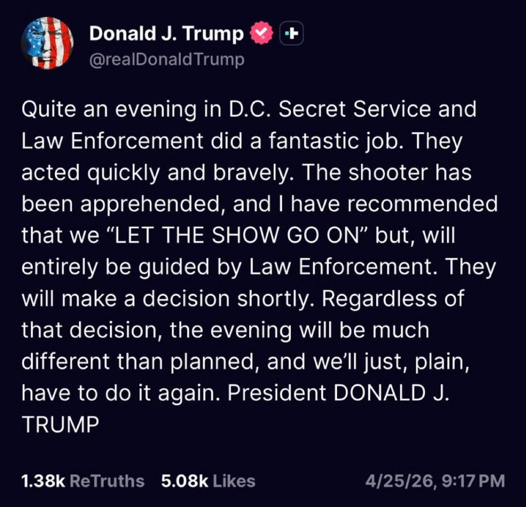 President Trump releases a statement after shots are fired Posted on April 26, 2026 by http://wealthcreation.club BREAKING: President Trump releases a statement after shots are fired at the White House Correspondents’ Dinner. Share this: Share on X (Opens in new window) X Share on Facebook (Opens in new window) Facebook Like Loading... Published by http://wealthcreation.club http://wealthcreation.club—We are educating regular people about how to be able to make more money in a disciplined way View all posts by http://wealthcreation.club